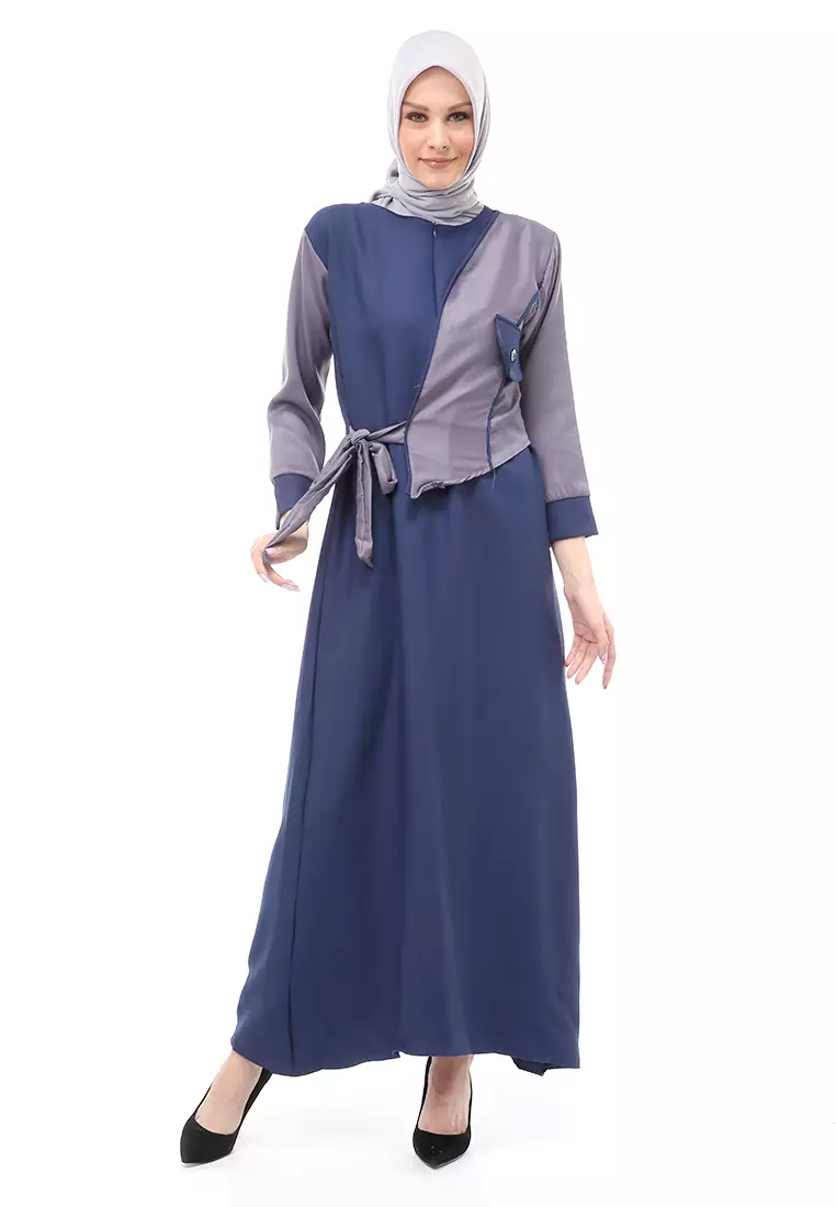 EvernoonAndira Gamis Muslimah Wanita Dual Tone Color Aksen Tali Ikat Regular Fit - Navy1017000.00406000.00