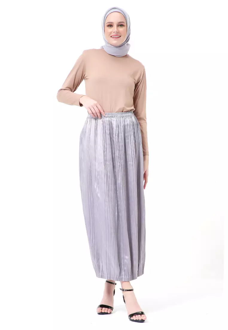 Angely Rok Plisket Rubbery Waist Fashion Wanita Simple - Silver