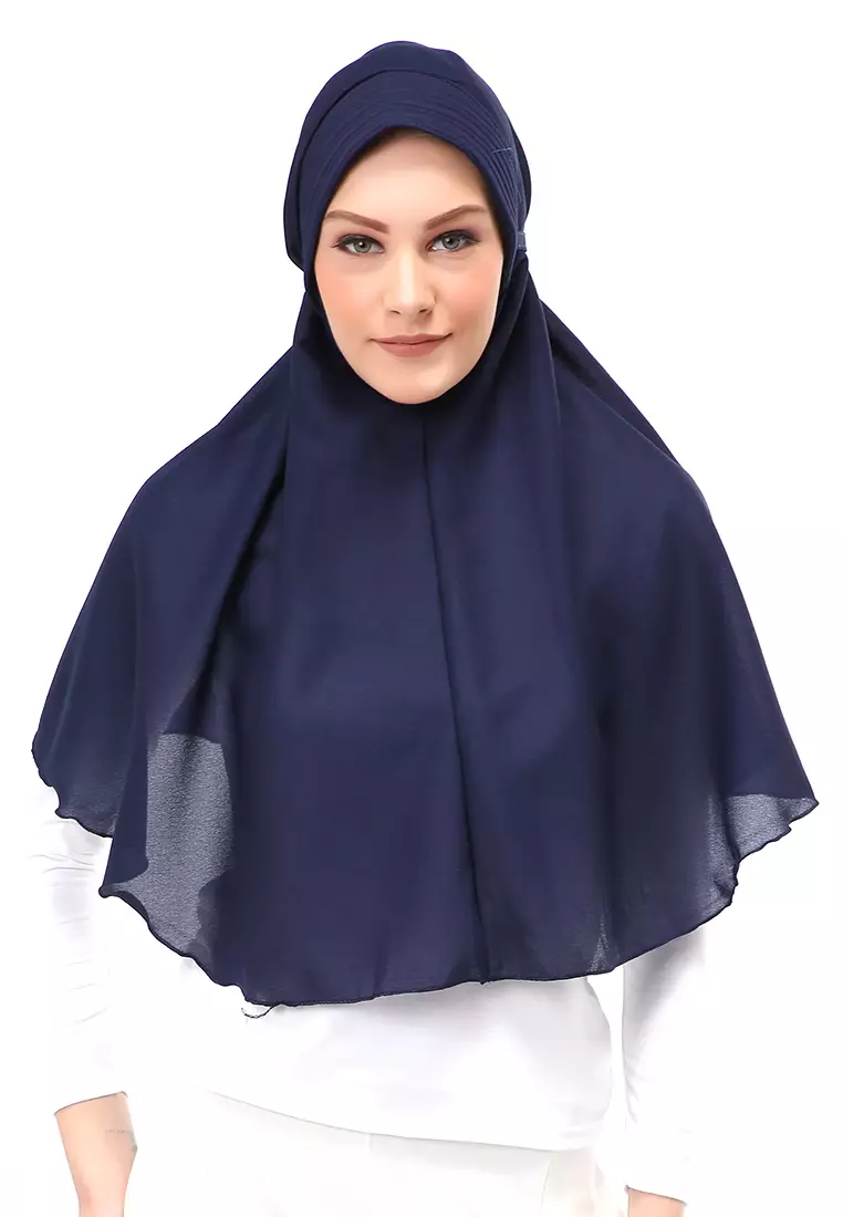 Anisa Jilbab Khimar Muslimah Polos Tali Berbo Regular Fit - Navy