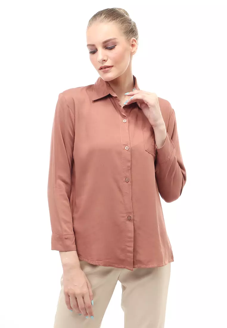 Arcade Atasan Wanita Long Sleeves Kemeja Polos Relaxed Fit - Mocca