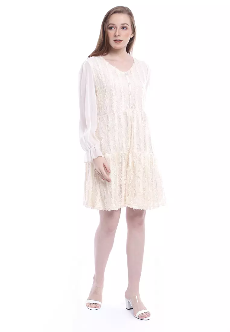 EvernoonAriel Mini Dress Wanita Long Sleeves Baju With Furry Design Elegant Regular Fit - Cream1397000.00558000.00