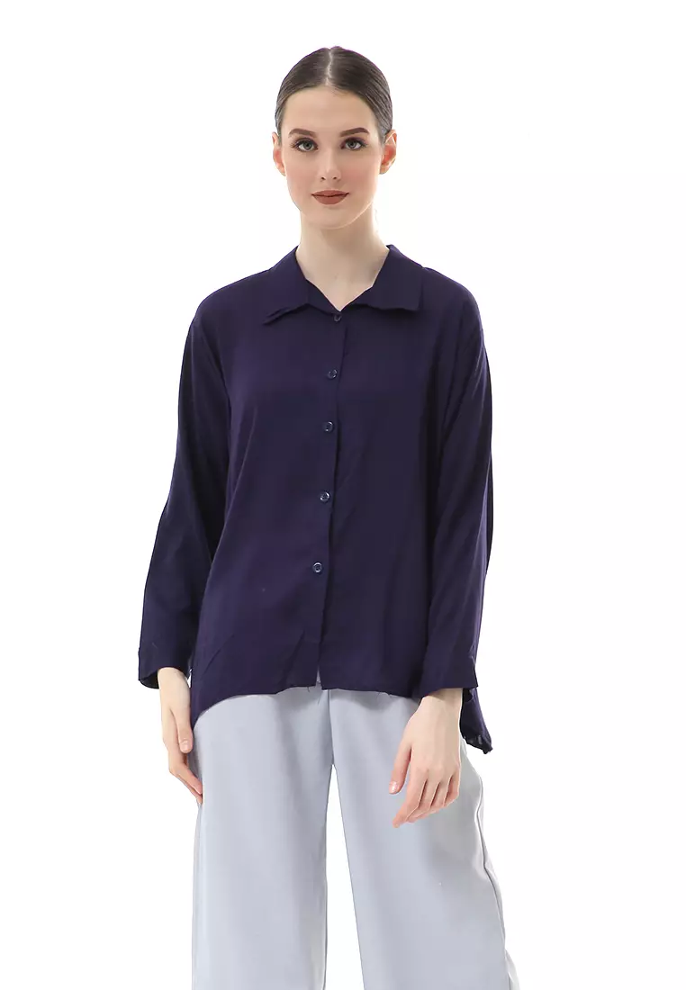 Ayudia Shirt Long Sleeve Atasan Wanita Premium Quality - Navy