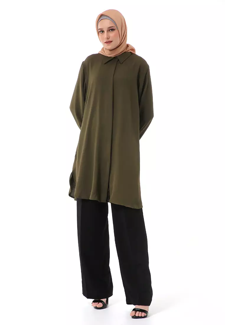 EvernoonAzzahra Tunik Panjang Muslimah Wanita Long Sleeve Regular Fit Premium High Quality - Army682000.00272000.00