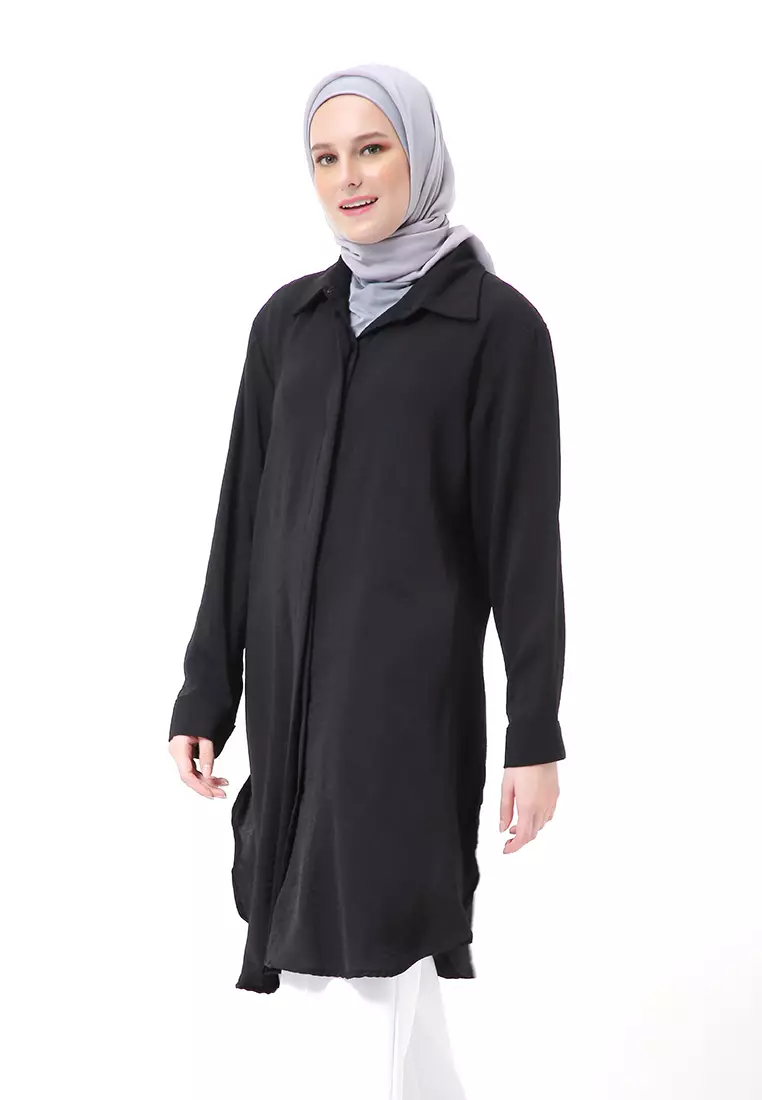 Azzahra Tunik Panjang Muslimah Wanita Long Sleeve Regular Fit Premium High Quality - Black