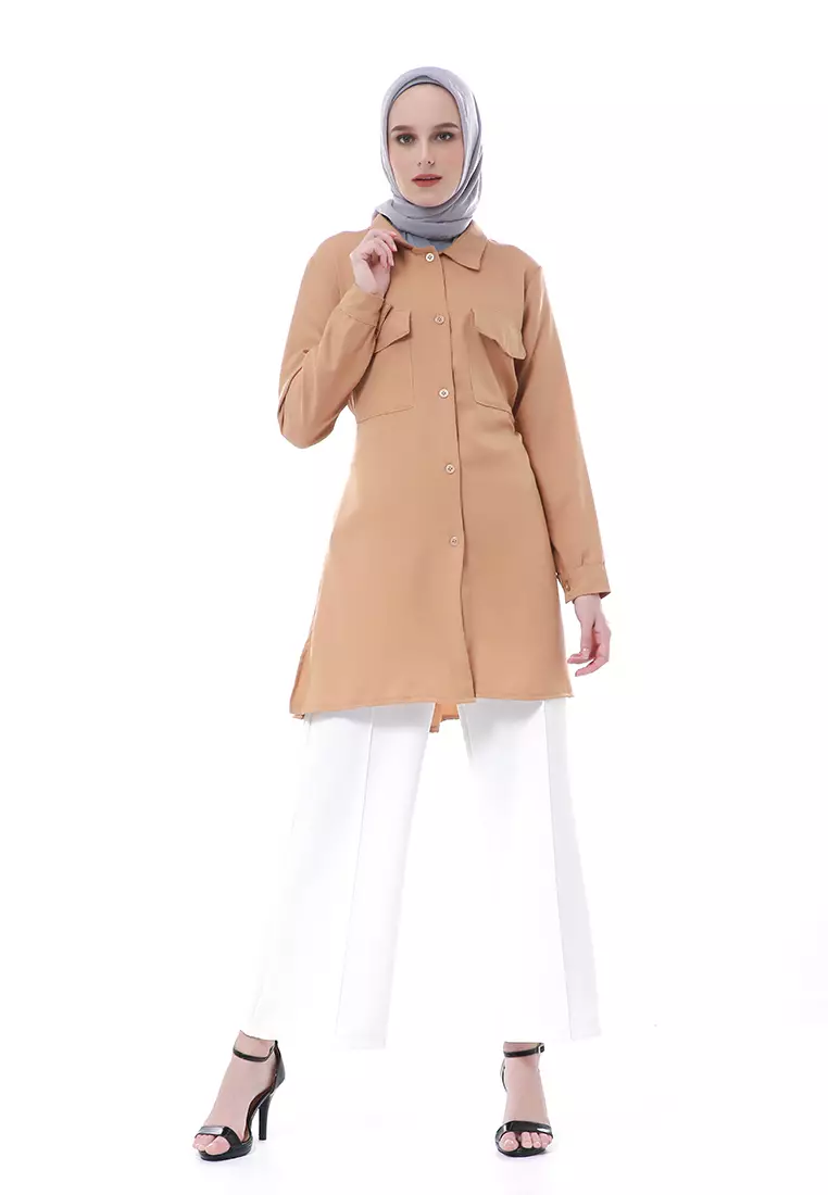Babyla Long Tunik Pakaian Atasan Muslimah Wanita Motif Polos - Mocca