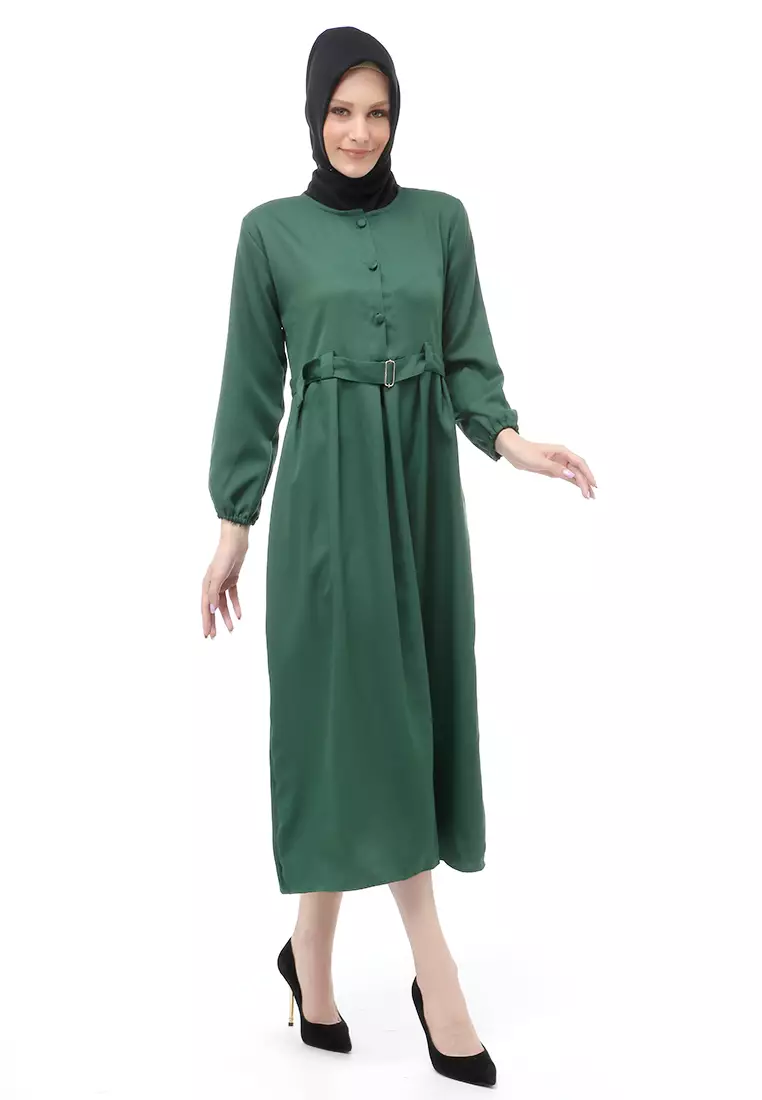 EvernoonBerliana Gamis Muslimah Wanita With Belt Motif Polos Long Sleeve Relaxed Fit - Army1001000.00400000.00