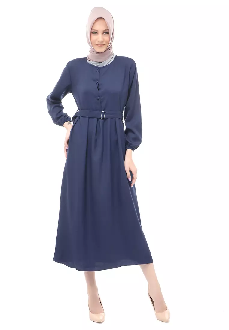 EvernoonBerliana Gamis Muslimah Wanita With Belt Motif Polos Long Sleeve Relaxed Fit - Navy1001000.00400000.00