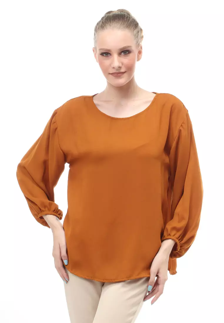Blouse Lengan Balon Motif Solid Design Simple Regular Fit - Brown