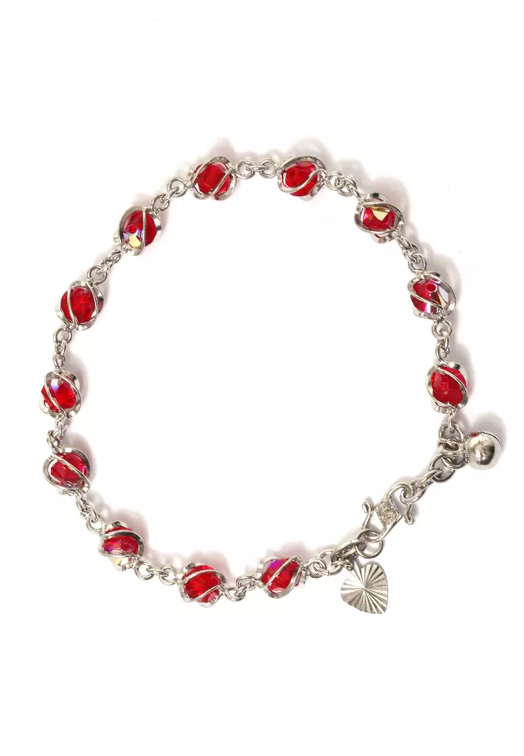 Bracelet Batu Kristal Perhiasan Aksesoris Wanita Perak - Merah