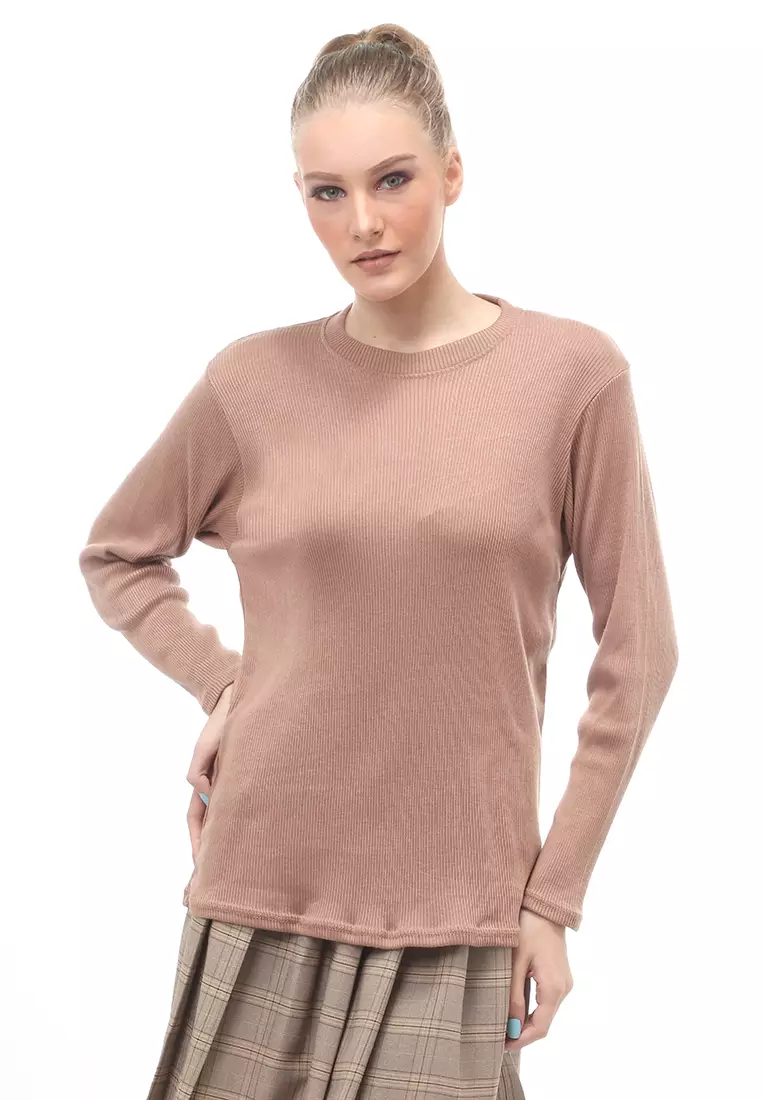 EvernoonBriley Kaos Atasan Wanita Long Sleeves Motif Salur Relaxed Fit - Mocca Tua317000.00126000.00