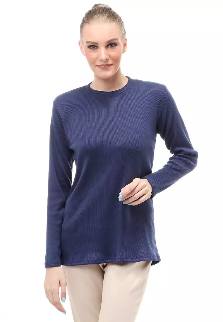 Briley Kaos Atasan Wanita Long Sleeves Motif Salur Relaxed Fit - Navy