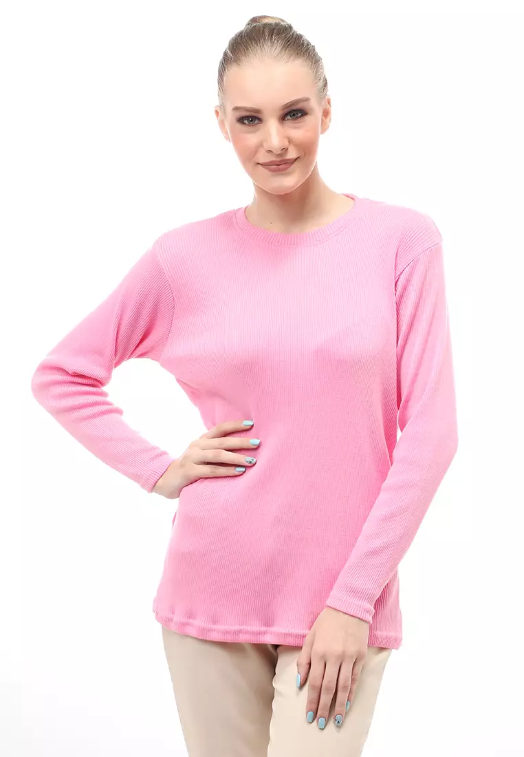 Briley Kaos Atasan Wanita Long Sleeves Motif Salur Relaxed Fit - Soft Pink