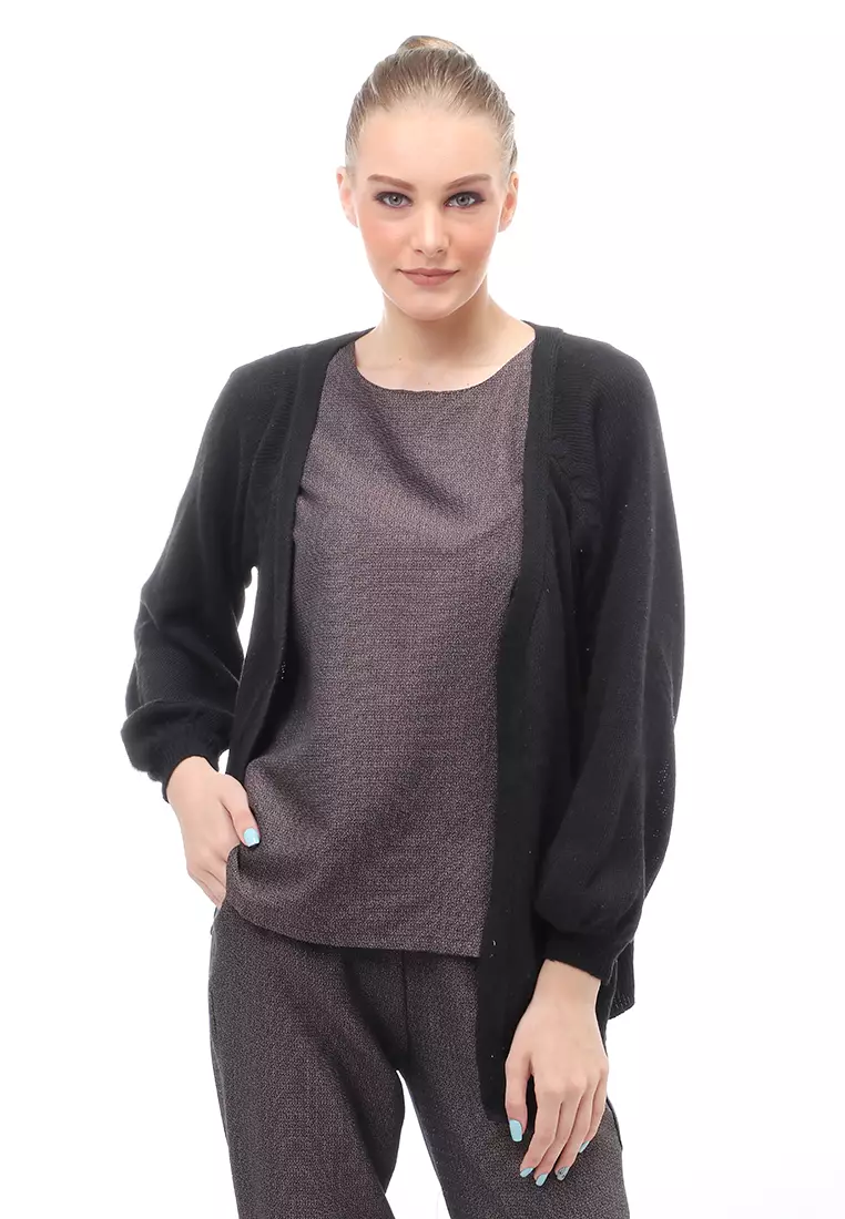 Cardigan Fashion Wanita Loose Fit Design Kasual Premium Quality - Hitam