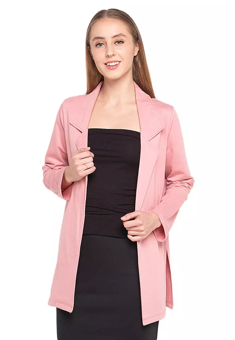 Cleve Blazer Plain Long Sleeves Atasan Wanita Design Kasual Open Front Style - Pink