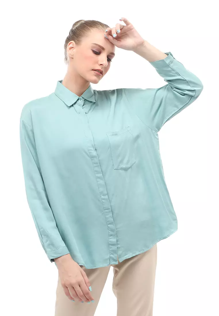 Dean Basic Shirt Lengan Panjang Atasan Wanita Front Button Opening Relaxed Fit - Tosca