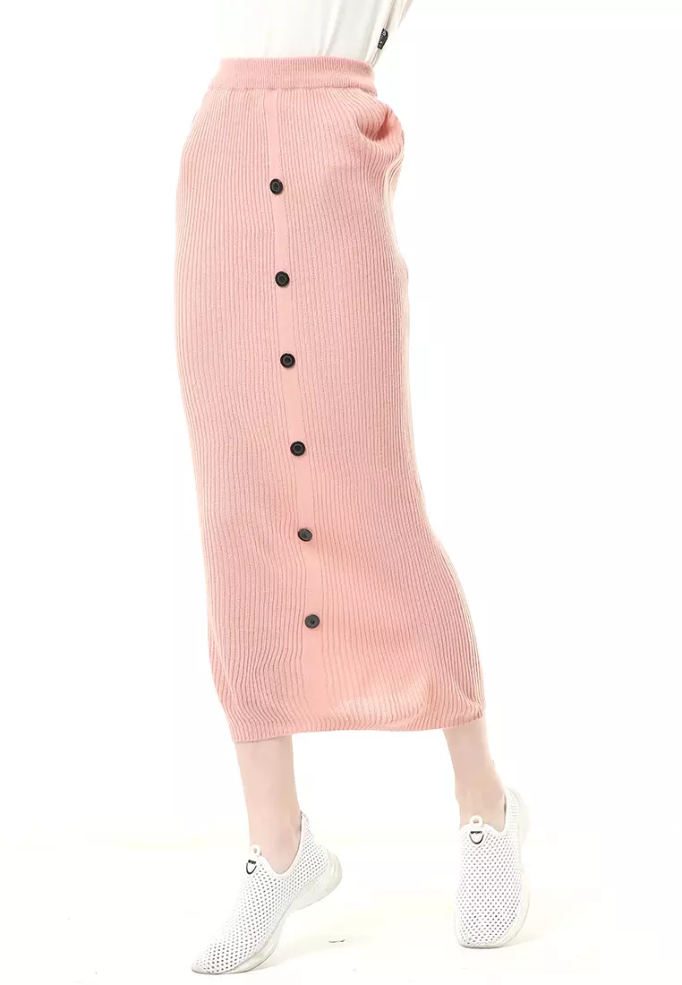Deliana Rok Rajut Kancing Bawahan Wanita Premium Quality - Dusty Pink