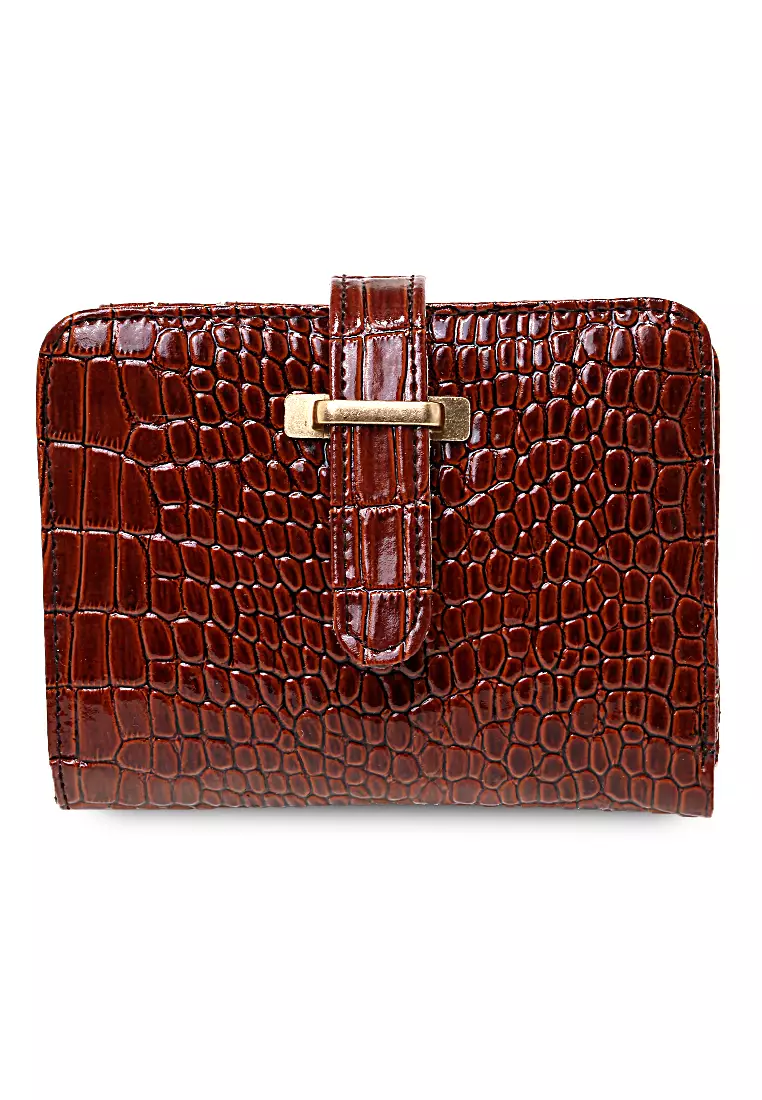 Dompet Kartu Motif Croco Design Casual Card Wallet Wanita - Coklat