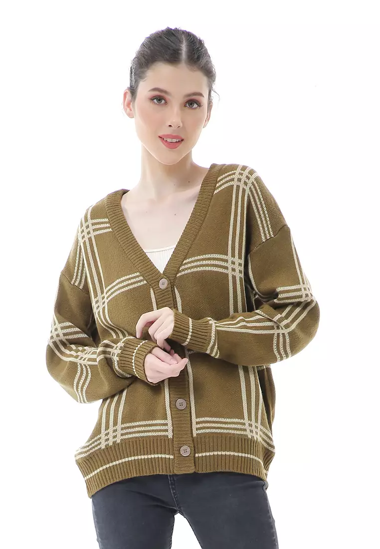 Eshika Cardigan Rajut Oversize Motif Kancing Tebal High Quality - Bronze