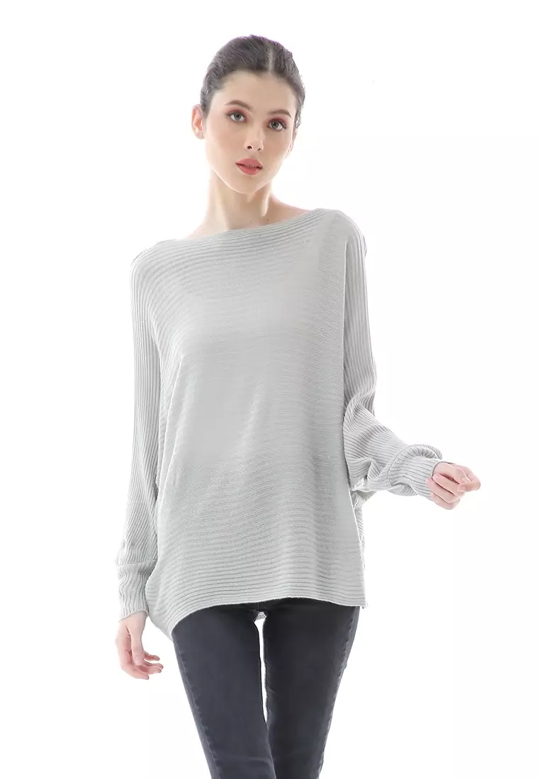 Eveline Sweater Rajut Batwing Atasan Wanita Motif Polos High Quality - Abu Muda