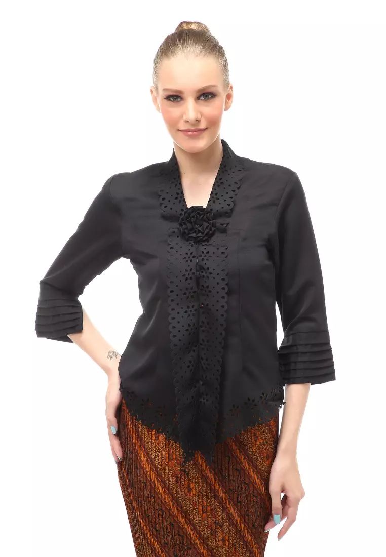 EvernoonFrodine Kebaya Laser Cut Aksen Bunga Atasan Wanita Casual Premium Quality - Hitam524000.00209000.00