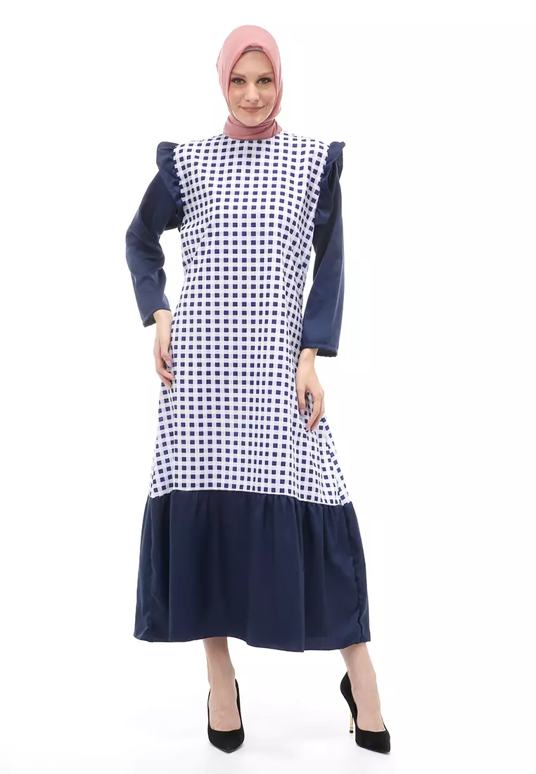 Ghina Gamis Tartan Muslimah Long Casual Wanita Regular Fit - Navy