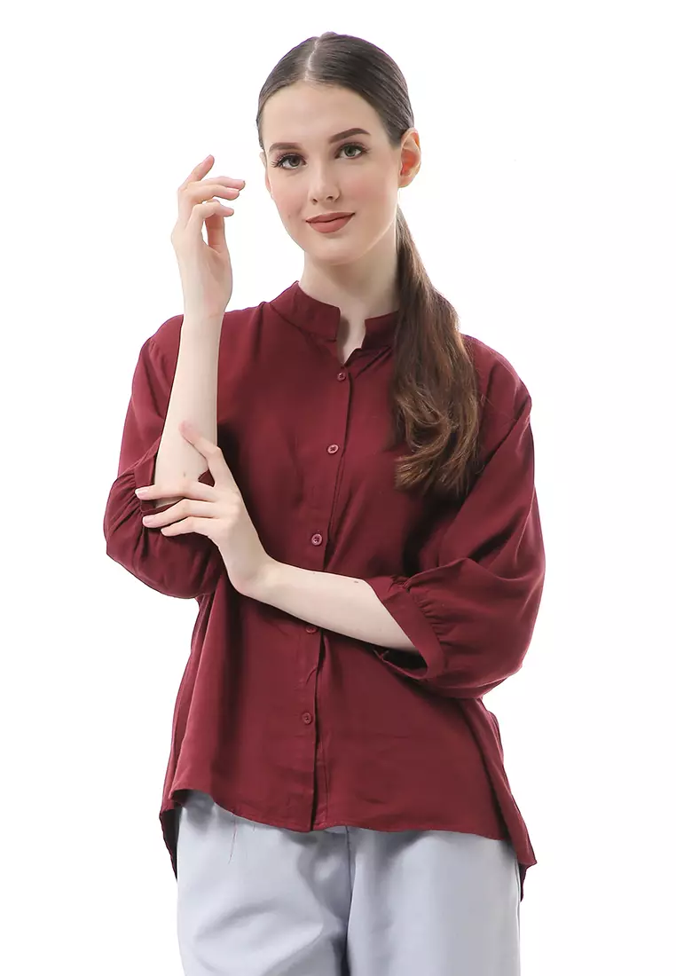 Ghita Kemeja Atasan Wanita Motif Polos Long Sleeve High Quality - Maroon