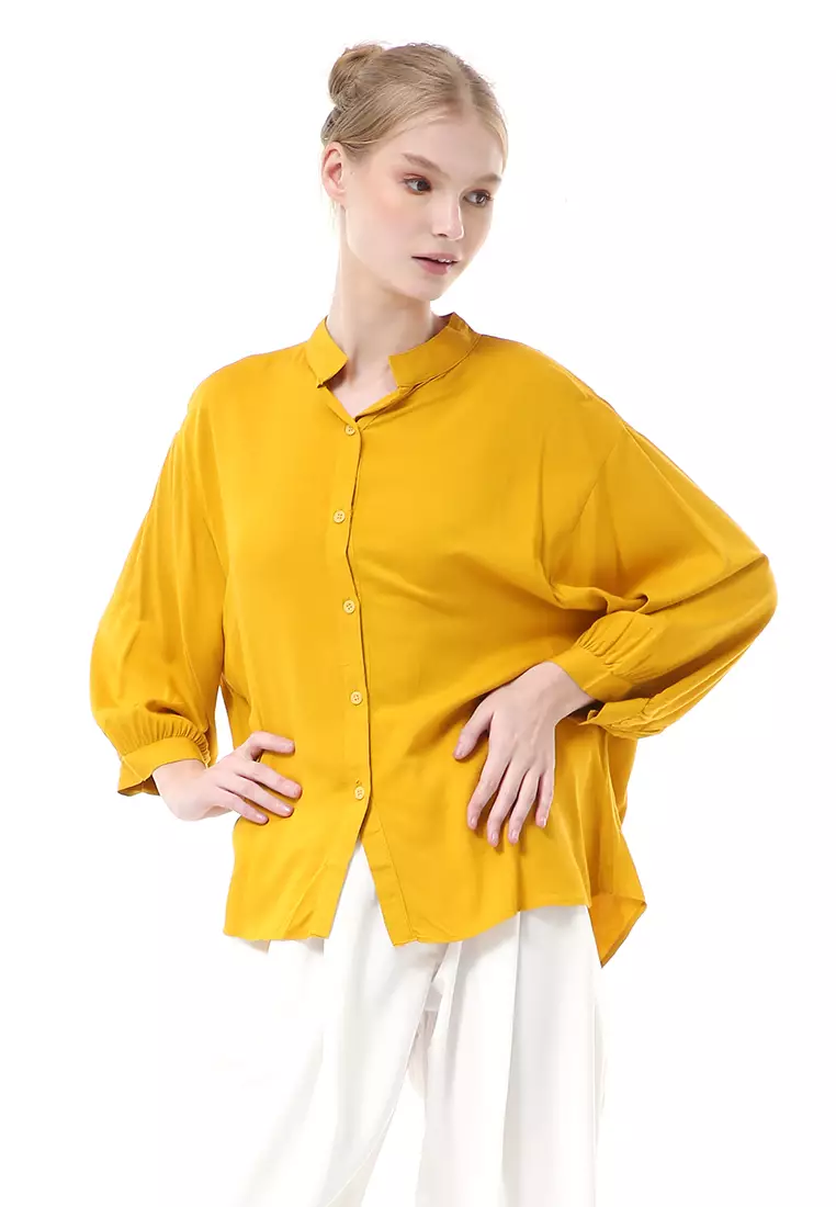 Ghita Kemeja Atasan Wanita Motif Polos Long Sleeve High Quality - Mustard