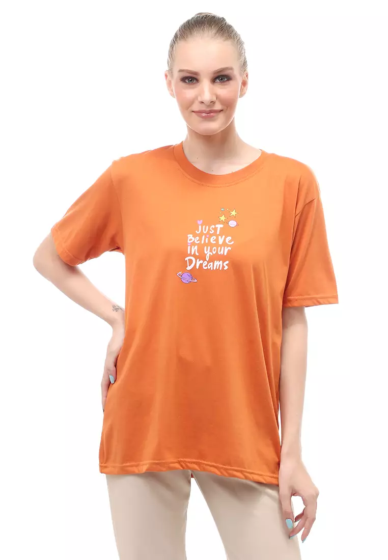 Heller Kaos Atasan Wanita Oversize Motif Print Short Sleeves Relaxed Fit - Lepen Bata