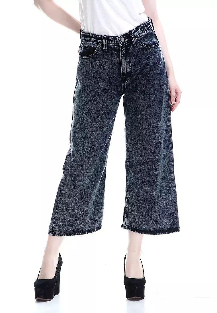 Jayla Celana Jeans Panjang Wanita Kulot High Waist Woman - Black Snow