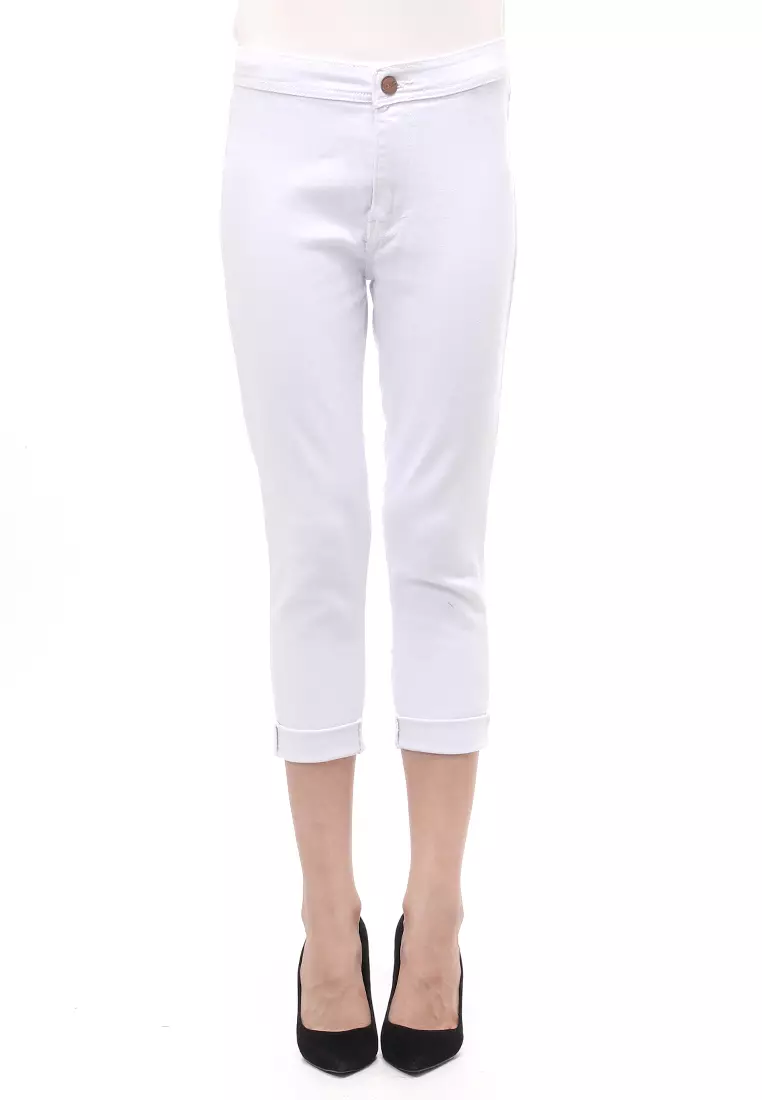 Jeans 7/9 Bawahan Wanita High Waist Design Simple Relaxed Fit - White