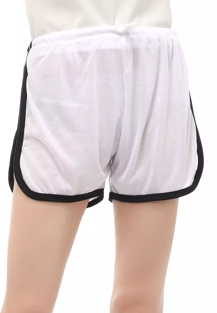 Jevera Hot Pants Detail List Motif Solid Fashion Wanita Relaxed Fit - Putih