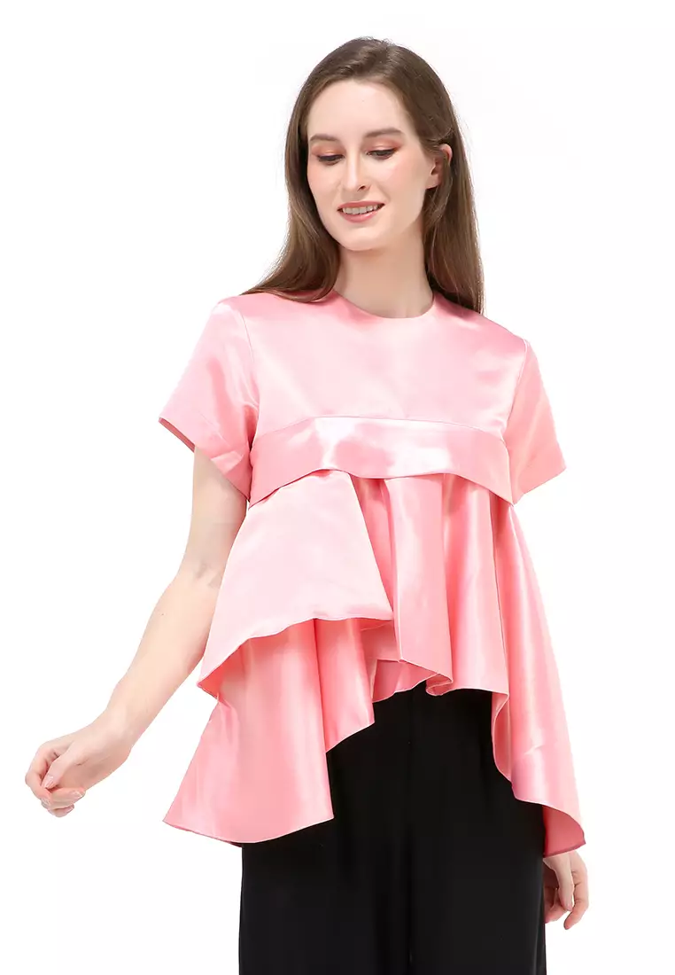 Kailah Blouse Short Sleeves Wanita Motif Polos Atasan Casual - Peach