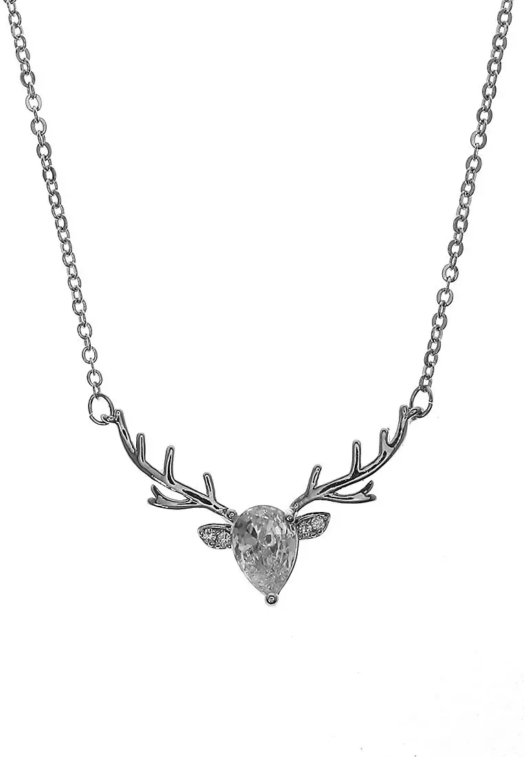 Kalung Aksesoris Wanita Berbentuk Rusa Design Elegant - Silver