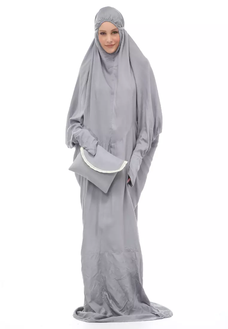 Karina Mukena Terusan Simple Muslimah Wanita Motif Polos Relaxed Fit - Abu Silver