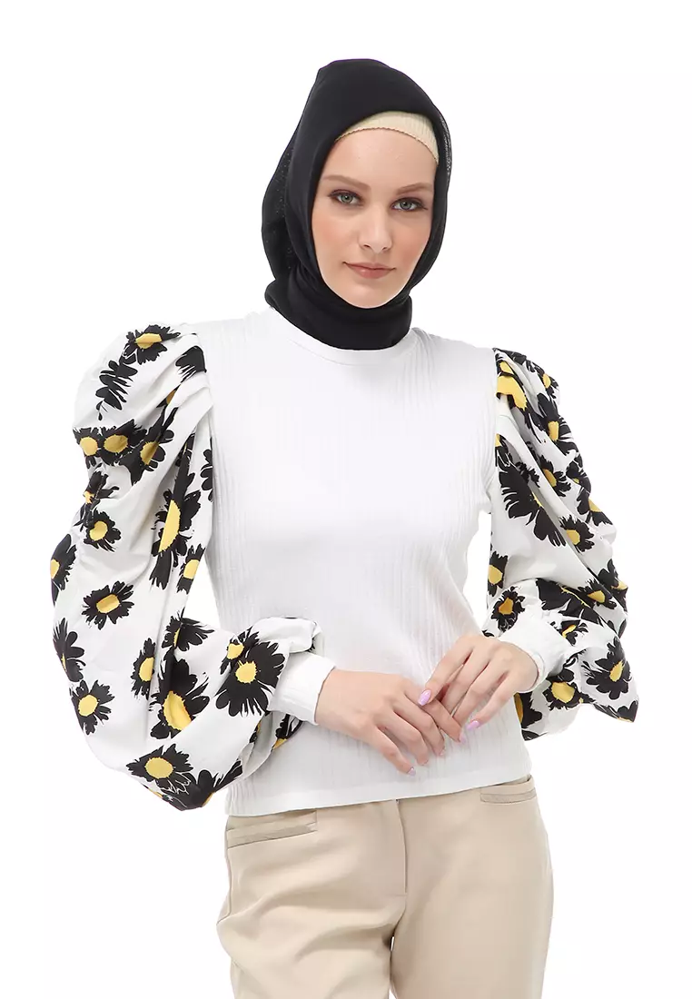 Kartika Blouse Muslimah Atasan Wanita Long Sleeve Motif Flower Regular Fit - Putih