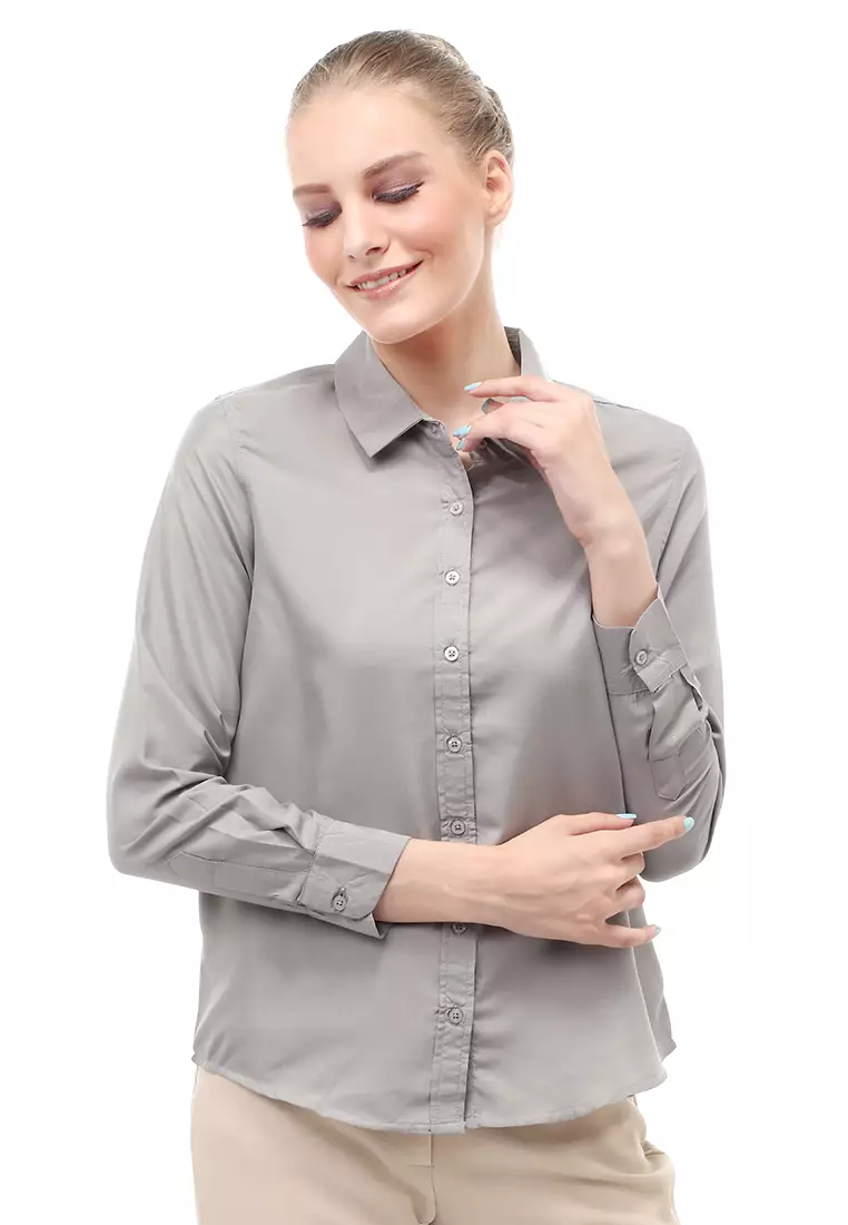 Kemeja Long Sleeves Atasan Wanita Motif Solid Shirt - Grey