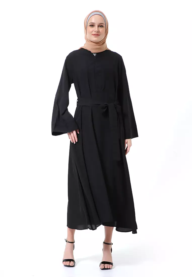 Khalisa Aiza Long Abaya Gamis Self Tie Belt Premium High Quality - Black
