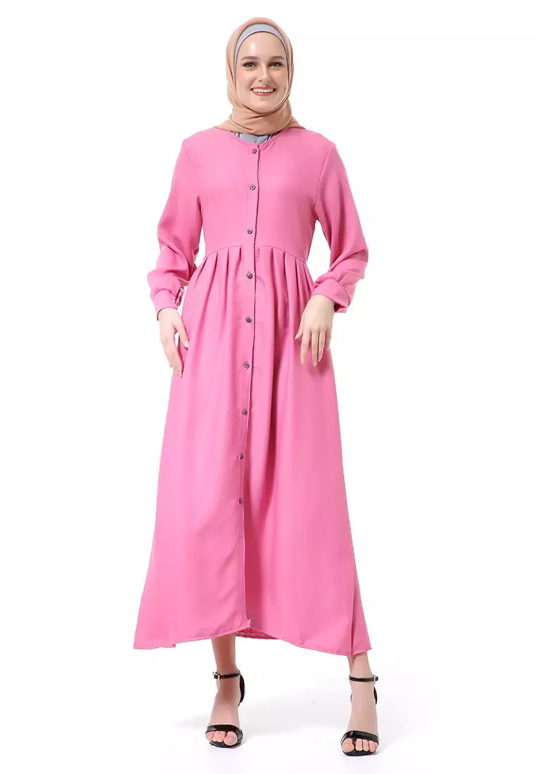 Kiyah Dress Button Muslimah Atasan Wanita Long Sleeve Premium Quality - Dusty