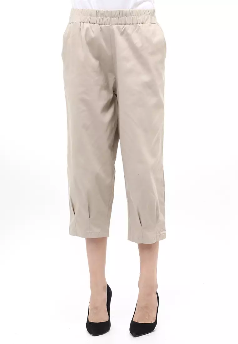 Lark Celana Panjang Bawahan Wanita Motif Solid Regular Fit - Cream
