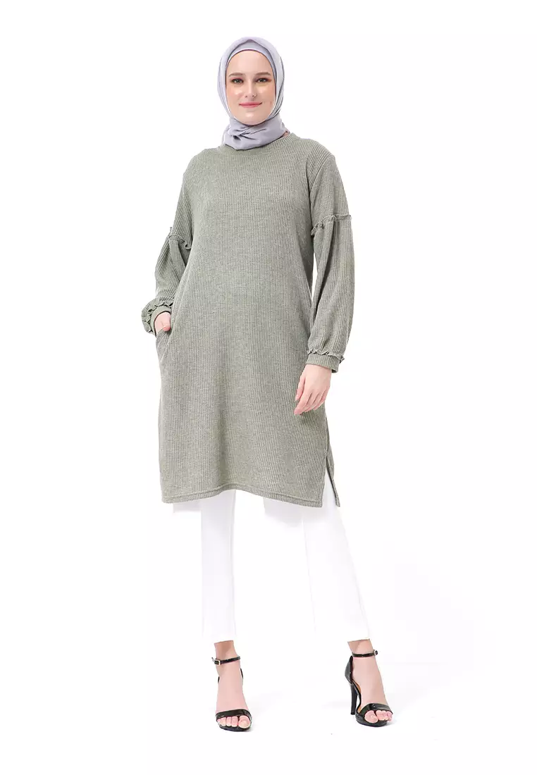 Layvina Tunik Polos Muslimah Lengan Panjang Premium High Quality Fashion - Sage