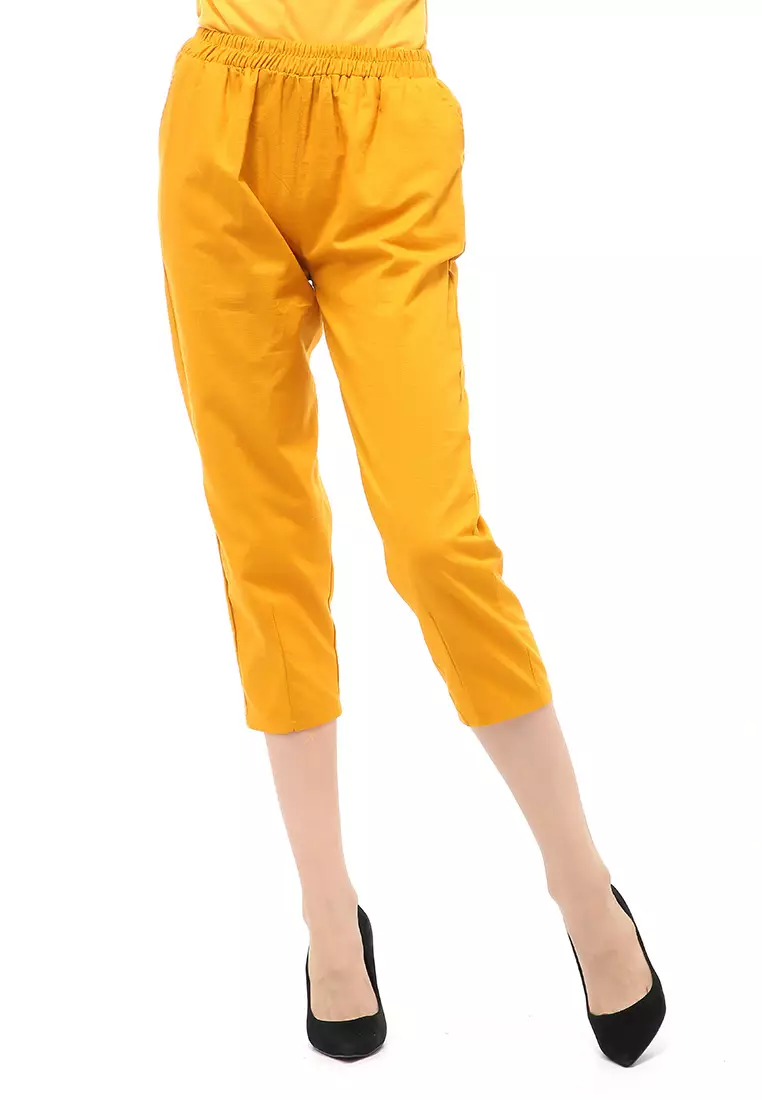 Long Pants Bawahan Wanita Motif Polos Design Casual - Mustard