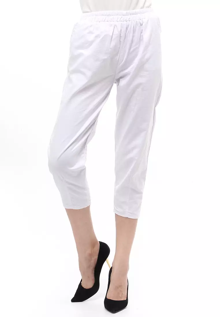 Long Pants Bawahan Wanita Motif Polos Design Casual - White