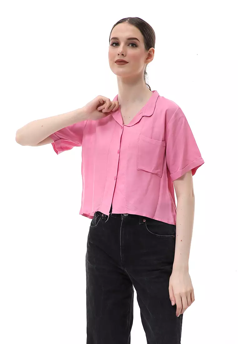 EvernoonMelinda Kemeja Crop Top Atasan Wanita Motif Polos Relaxed Fit - Pink302000.00120000.00