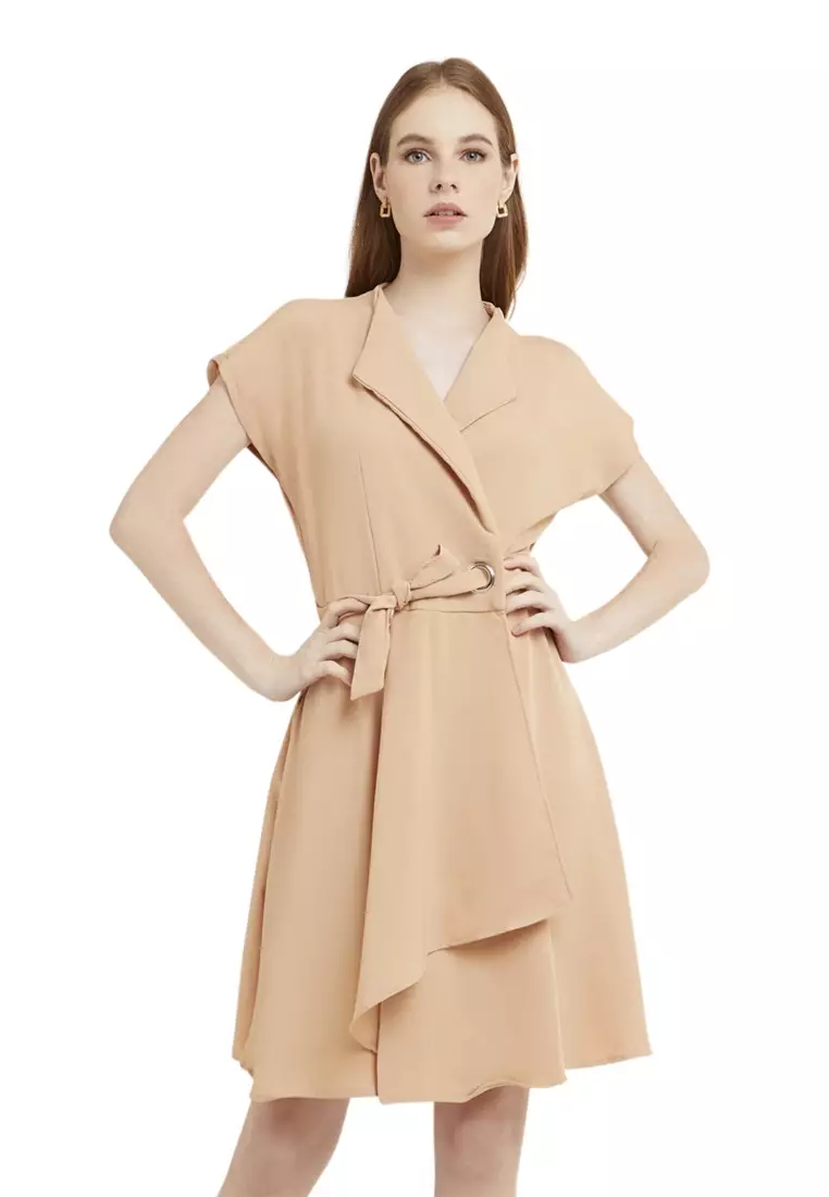 Mini Dress Kasual Lengan Pendek Collar Neckline Baju Wanita Regular Fit - Cream