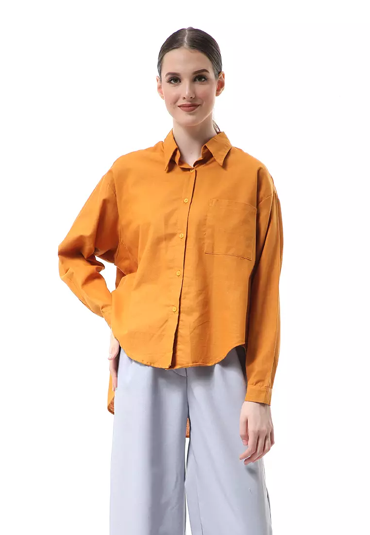 Nandira Kemeja Atasan Wanita Oversize Motif Polos Long Sleeve - Bata
