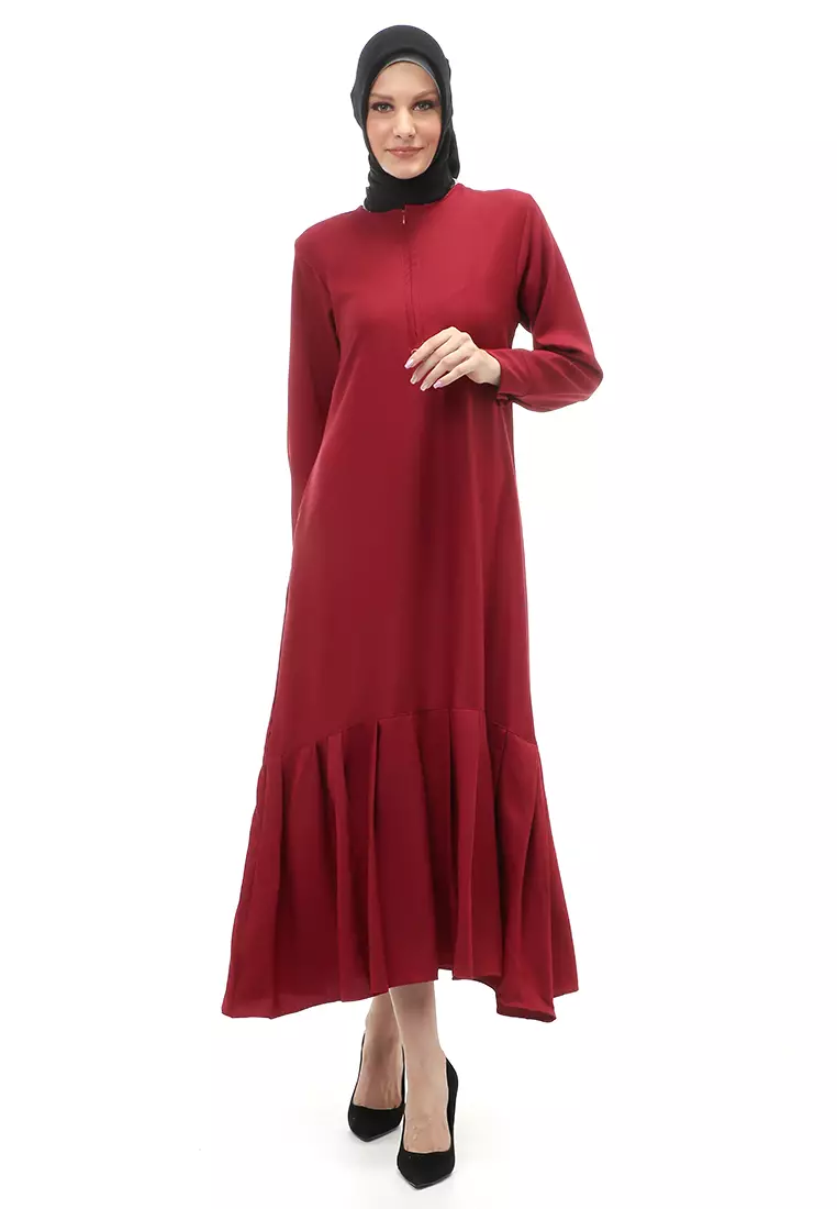 Natalia Dress Muslimah Wanita Long Sleeve Polos Design Casual Regular Fit - Maroon