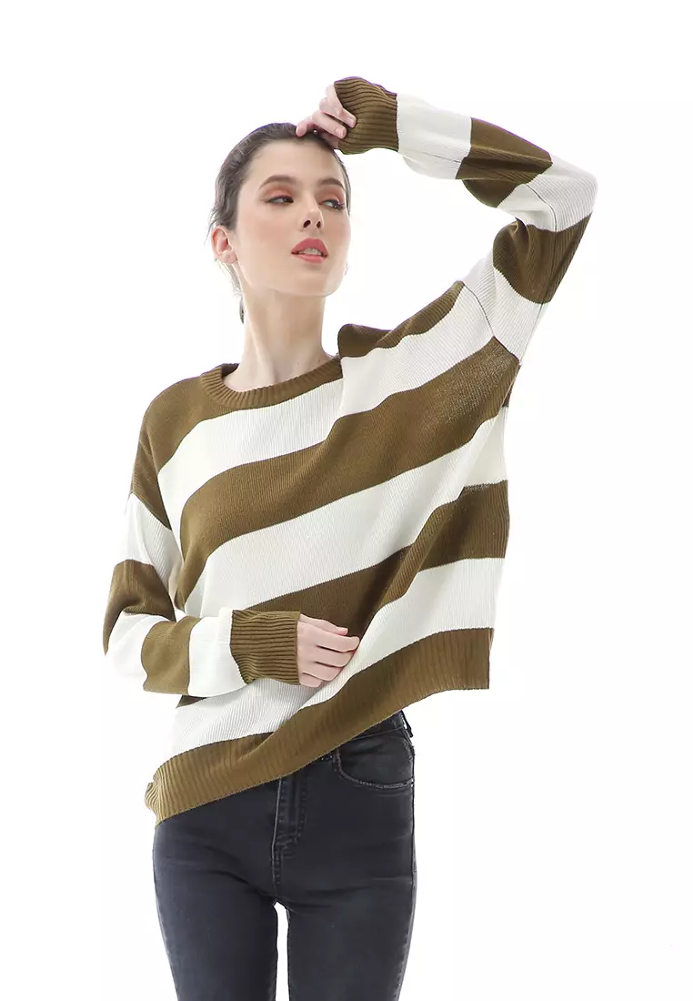 Nayara Sweater Rajut Atasan Wanita Oversize Long Sleeve Relaxed Fit - Bronze