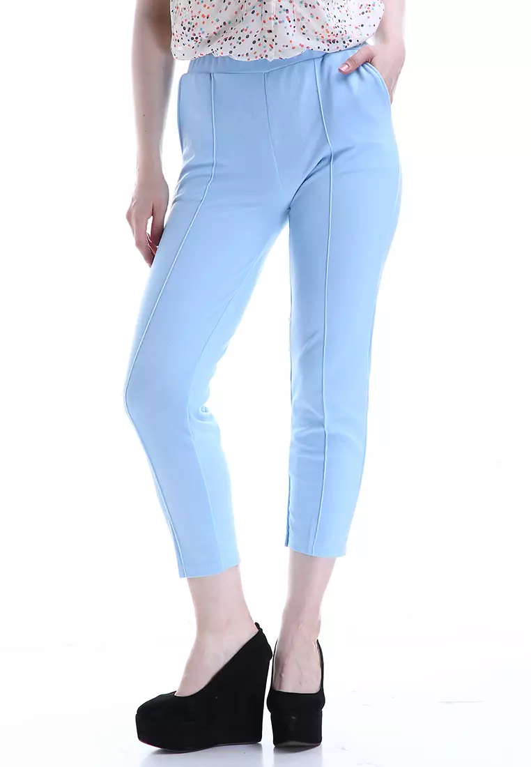 Opium Celana Panjang Wanita Rubbery Waist Long Pants Woman - Biru