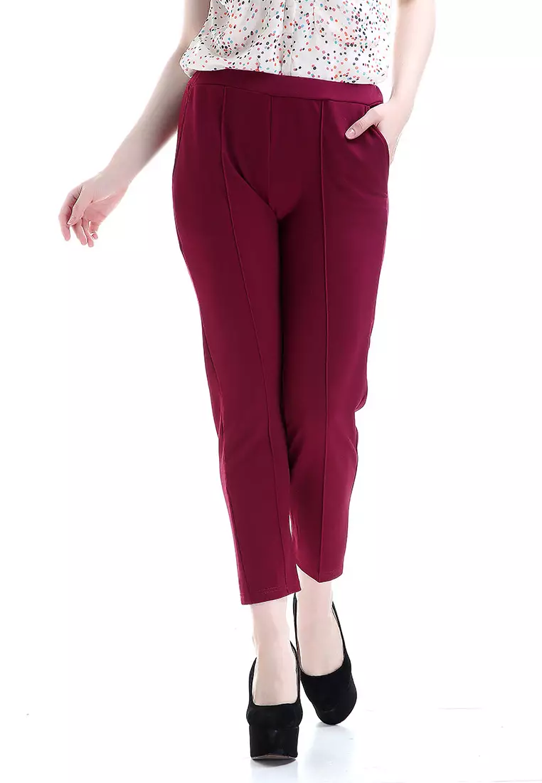 Opium Celana Panjang Wanita Rubbery Waist Long Pants Woman - Magenta