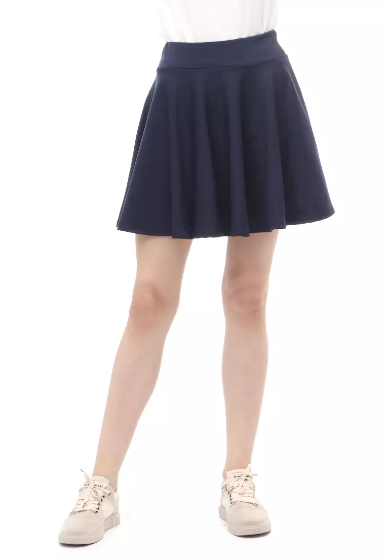 Rok Midi Bawahan Wanita Motif Solid Casual Relaxed Fit - Navy